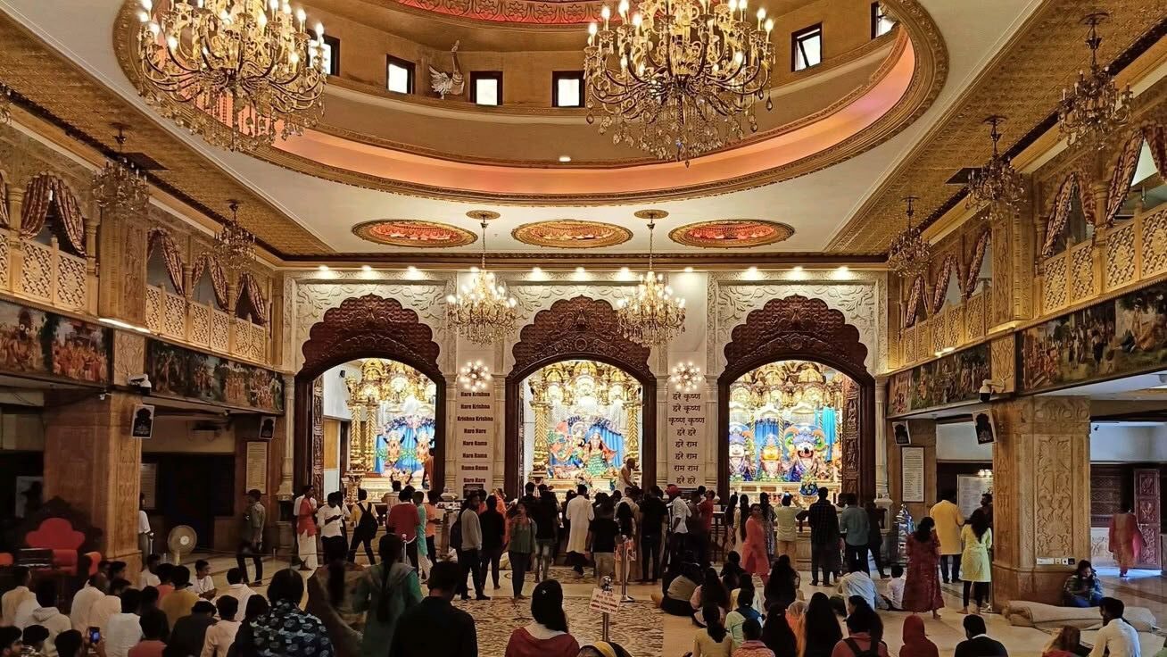 Also known as Krishna Balaram Mandir, this temple attracts devotees from around the world for peaceful worship and kirtans.